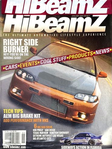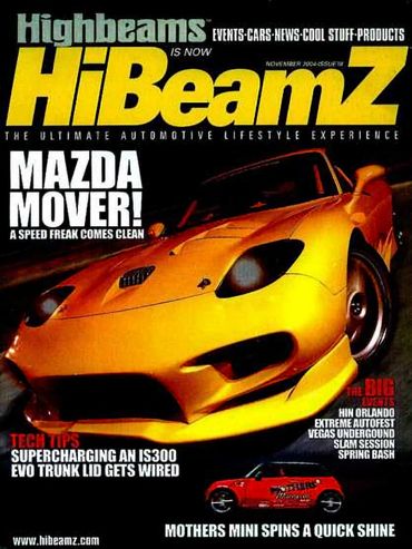 Highbeams was published by Paisano Publications and publisher Joe Teresi. It was a glossy, male-oriented lifestyle magazine focused on tuners. Seven issues were printed with the Highbeams title, The full-sized print magazine followed the same formula Paisano Publications used for a sister title, Tailgate Magazine. It focused on young male readers and offered content on "cars, shows and buns". The early issues featured Fords, Chevy, Hondas, Pontiacs, Nissan and Mazda vehicles. And some point, the title pivoted to more tuner-lifestyle oriented features, with a cover heading emphasizing "tuners, tech, products, lifestyle, events and trends". This was represented by the name change to HiBeamZ. then it was re-titled to HiBeamZ and continued for five more issues.
